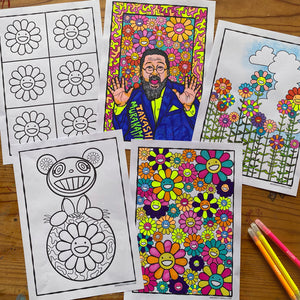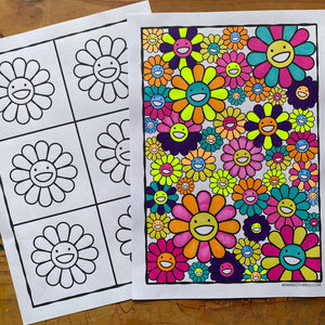 Get creative at home with our Takashi Murakami printable colouring sheets. The printable includes 5 fun, flower-filled, pop art designs inspired by the artwork of Murakami.